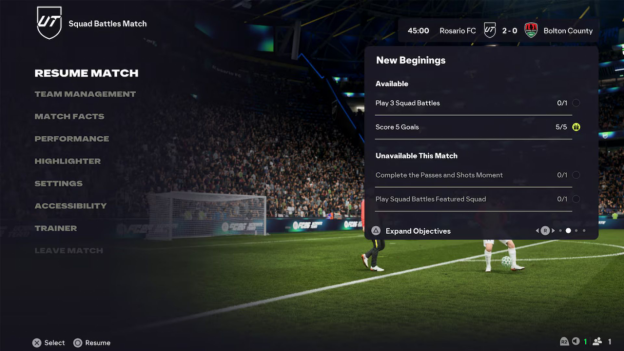 • In-Game Tracking: Favorited objectives, including FC 26 Evolutions and Rivals Bounties, will show up in the pause menu during a match.